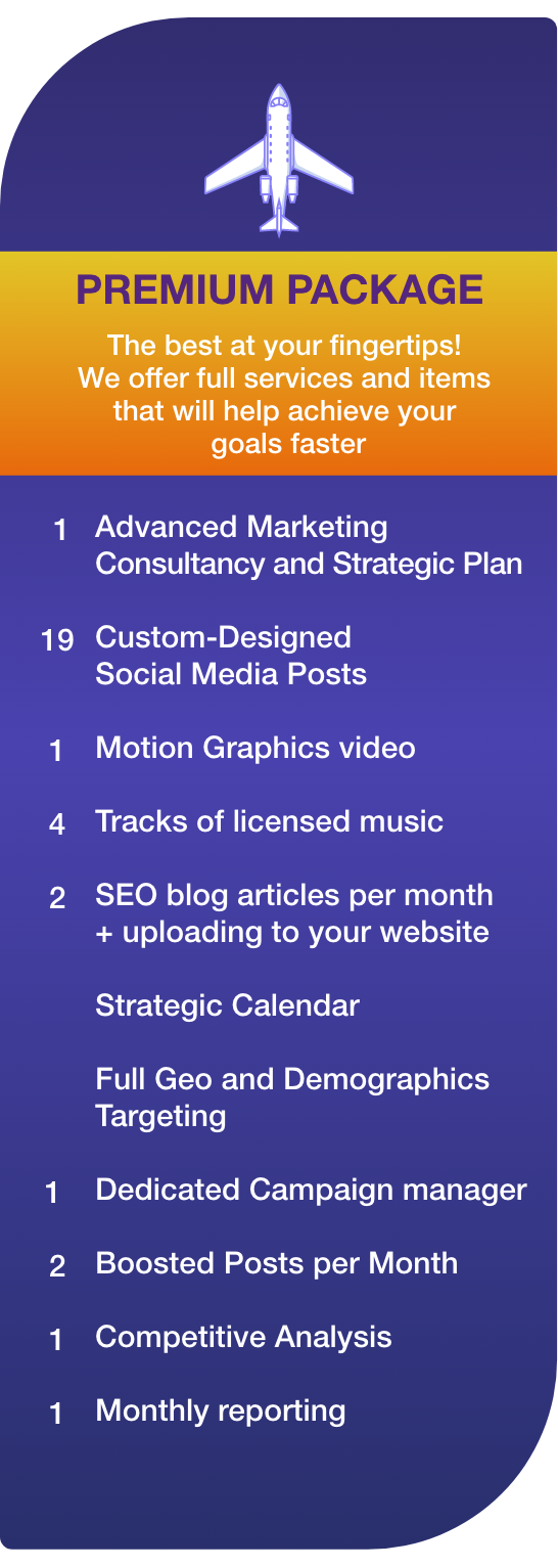 Our consultants take an in-depth look at your social media presence, as well as your brand, industry, competitors, and audience. We will develop a full report and plan that will help your business achieve its goals.
